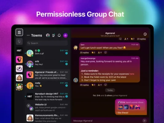 Towns is permissionless group chats. Unlike traditional social media platforms, Towns puts the power back into the hands of users, allowing them to create, manage, and participate in digital communities called "Towns."