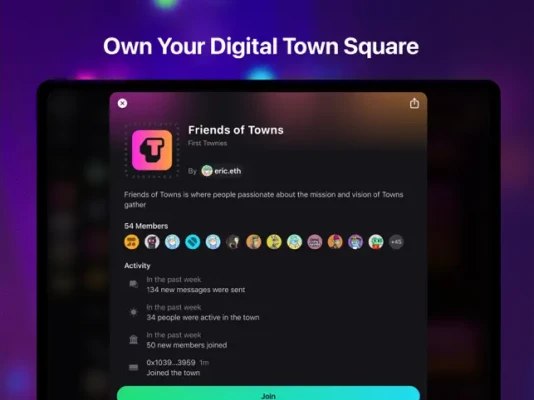 2. Digital Communities (Towns): Users can create or join "Towns," which are customizable spaces for like-minded individuals to gather, share content, and interact.