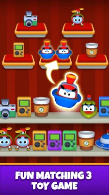 - Match 3 identical toys in a colorful 3D space to clear them from the board.