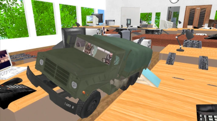 FEATURES: - Incredible, huge office environment - Highly detailed military vehicle and toy soldiers - Easy to use touch and tilt truck driving controls - Truck driving physics engine imitates realistic truck driving