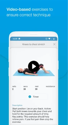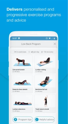 The app then provides video-based exercise programs and advice that has been designed from the best available scientific evidence. For every exercise prescribed in the app there is a link to information showing why that particular exercise is effective for treating a condition like yours. Furthermore, the analysis of the outcomes of 100,000 rehabilitation programs has been used to inform the decision on what exercises to include in treatment programs.