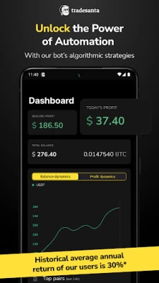 Set up a crypto bot and save your time by automating the crypto trading routine with TradeSanta. Connect TradeSanta automated crypto trading platform to your exchange and manage your bots right from the smartphone.