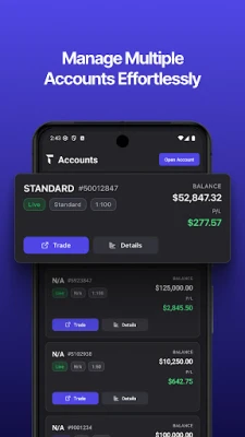 • Create and manage multiple trading accounts (demo & live)