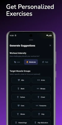 Exercise Suggestions: Custom recommendations for strength, cardio, or muscle building