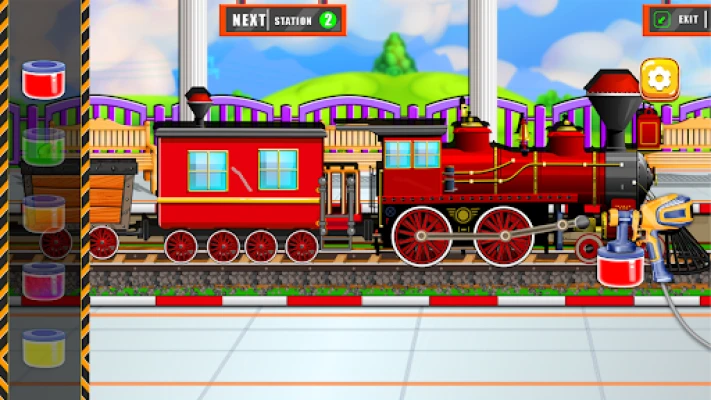 * Assemble different truck parts and make a different construction truck to build a railway train track in the train station game.