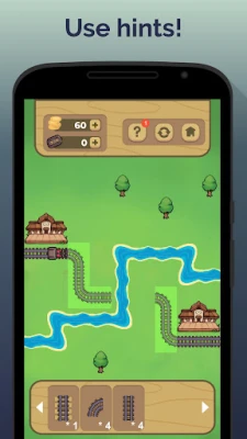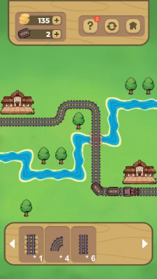 The gameplay is simple: The railroad has not been built yet. Just drag and drop the pieces to connect the railway tracks. But don't be fooled by the simplicity of the game – as you progress, you'll encounter obstacles like rocks and rivers that will make it harder to connect the tracks. Lay rails between stations, avoid obstacles, find the shortest route for train and complete the construction. Get coins for transporting goods. Buy trains and additional wagons to increase your profits. Create the shortest route for train. Build a railway.