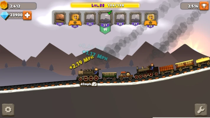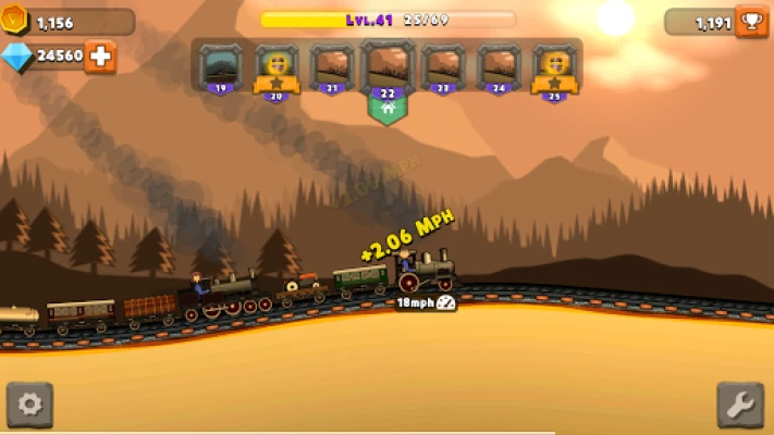 *Unique idle clicker style game! *Day-night cycle! *Progress through lots of levels featuring unique themes! *Tran can consist of many cars and multiple train engines! *Upgrade train engines from simple hand cars, steam engines to diesel engines! *Unlock and assign unique engineer heroes! *Use skills to improve gameplay!