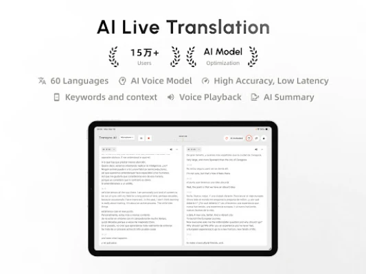 Powered by advanced end-to-end speech models, Transync AI delivers near-zero-latency real-time simultaneous interpretation. It supports 60+ languages, bilingual dual-screen display, AI voice playback, an AI Translation Assistant, and AI-generated meeting minutes. Your account syncs across devices, and new users get a 40-minute free trial upon registration.