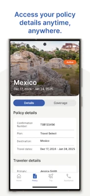Note: Upon download, enter your Policy/Confirmation Number and the Last Name of the policy purchaser, which can be found in your Confirmation of Coverage document sent by our Travelex Insurance team.