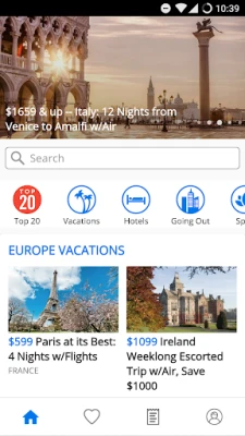 - Quickly tab between the Top 20, Travel Deals, Local Deals and My Vouchers to discover deals.