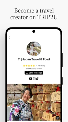 Monetize your travel guides on TRIP2U - a mobile app dedicated to the travel and creator industry. Set your own prices and earn from every sale. Whether you’re creating guides as a side hustle or a full-time business, TRIP2U offers a flexible way to generate income. Our app’s intuitive editor makes it easy to create, share, and update your guides while you travel the world. TRIP2U offers personalized support to ensure your guides thrive on our app. Build your brand as a travel expert by crafting guides that highlight your authenticity and inspire a global audience with your unique travel content.