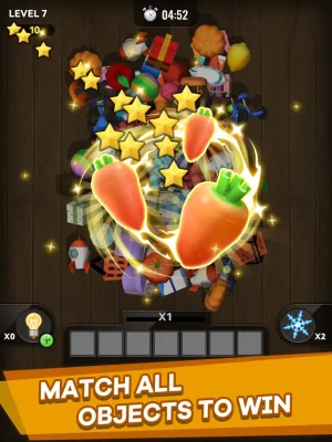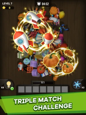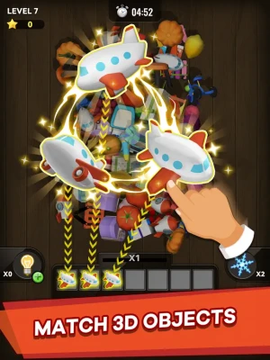 Triple Match 3D game is simple: you need to match identical 3D objects on the table to complete the level. Use boosters to complete the level even faster! Each level will has a limited time to complete. Keep playing until you can clear all the objects on the table.