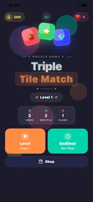 Triple Tile Match is a fun and addictive tile-matching puzzle game. Tap tiles to collect them in your tray — match 3 of the same kind to clear them! Race against the clock, use powerful boosters, and complete increasingly challenging levels.