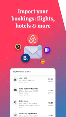 See your trip come to life on an interactive map. Arrange places in the perfect order, check travel times and distances, and create a clear daily schedule that automatically adjusts to time zones.
