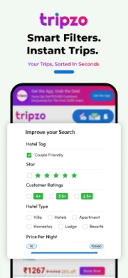 Tripzo focuses on hotel stays as its core offering, with a carefully curated mix of: