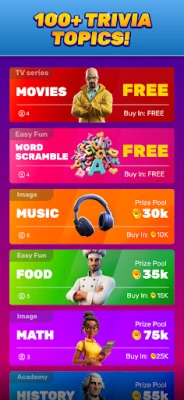 Hundreds of topics – From pop culture and sports to science, history, and brain teasers. Whether you're into movies, music, sports, food, celebrities, or even math, Literature, Spelling, Riddles, Logic, Flags, Capital Cities, Space, Mythology, Human Body, Inventions, Famous Landmarks, Chemistry, Biology, Physics, Nature, Animals, Plants, Weather, Environment, Oceans, Cars, Technology, Computers, AI, Programming, Gaming, Board Games, Video Games, TV Shows, Disney, Netflix, Superheroes, Anime, Harry Potter, Star Wars, Game of Thrones, Marvel, DC, Pokémon, Cartoons, Books, Comics, Famous Quotes, Lyrics, Pop, Rock, Hip Hop, Country, Jazz, Classical, Musical Instruments, NBA, NFL, MLB, NHL, Soccer, Tennis, Olympics, WWE, Extreme Sports, Food, Drinks, Cooking, Recipes, Health, Fitness, Medicine, Fashion, Beauty, Travel, Holidays, Traditions, Languages, Slang, Fun Facts, and much more!