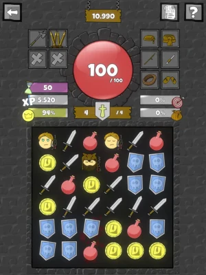 More and more enemies pour through the broken door and by connecting them to sword tiles you can fight them off. Once you get hit you can connect potions to heal your wounds or connect shields to improve your armor. Connecting gold might lead to new treasures that help you defend what is yours and keep their filthy hands of your stuff.