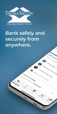 Dashboard - Manage all of your Trona Valley FCU accounts in one easy to view dashboard. View available funds, the progress of savings goals, upcoming payments, how much you’ve deposited, and personal recommendations all in one simple and easy to read screen. Accounts - View and manage all of your cash accounts digitally. Review recent transactions, see current balances, and search for specific payments or deposits. Bill Pay - Schedule or manually make payments on your bills through our easy-to-use bill pay system. Fund Transfers - Send funds to and from your connected accounts through our easy to use fund transfer capability.