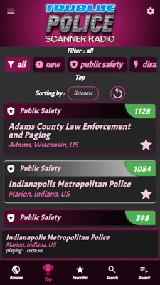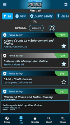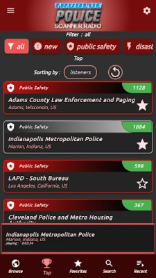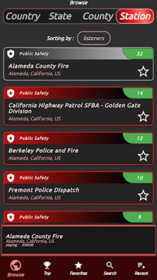 Police Scanner Online / Offline indicators makes it easy to tell if the audio feed is currently Online. Stream your favorites police feeds in the background and pause/play at any time through your phones notifications or lock screen. Search for your desired police station radio by using Search, Top Stations, Favorites or Navigate through Country / State / County location near you.