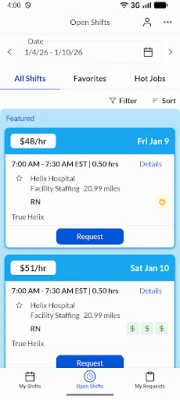 True Helix offers app-to-app connections for healthcare professionals and clients to directly interact, offer, and fill shifts with one another. Our system is designed for per diem, travel nursing, home care, locums, allied healthcare, and all other healthcare positions.