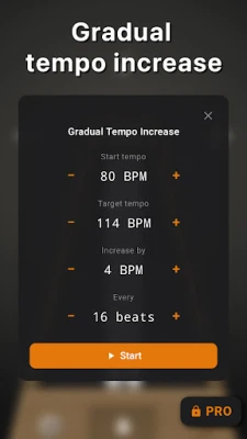 - Tempo Trainer — gradually increase tempo over a set number of measures, so you build speed without noticing. Perfect for building technique on scales, arpeggios, or difficult passages.
