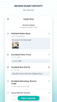 • Read and respond to your clients’ workout comments