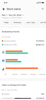 - Ad spend breakdown by ad channel (Facebook, Google, TikTok & more)