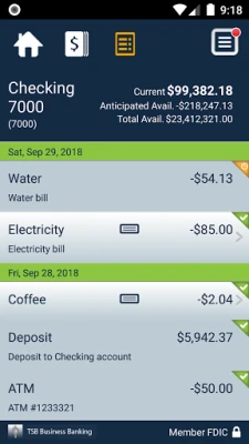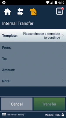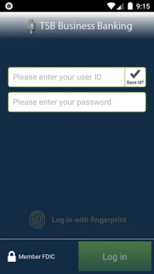 Manage Your Accounts: • Check business account balances • View recent transactions, including check images • Transfer money between accounts Deposit Checks: • Deposit checks by snapping a picture of each check • View deposit history in the app Review and Approve: • Approve transactions scheduled through TSB Business Banking, including fund transfers, ACH transfers and wire transfers • Receive alerts when approvals are pending