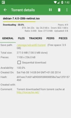 tTorrent is simply the best torrent (P2P) downloader client for Android based devices. Download large files like free movies, free music albums, free software programs, free MP3 files and other entertainment media to your phone or tablet very fast. High Speed Internet connection (Wi-Fi, 4G) necessary!