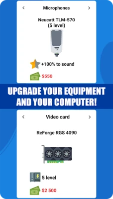 - You can't do without equipment and a team for all the above-mentioned things! Hire employees: screenwriters, makeup artists, cameramen, etc.! Working alongside them, you boost your video recording skills! For tik-toks, buy new smartphones, lighting, and other equipment, raising the overall quality! And for the streams, you will need a good computer and equipment: buy spare parts for your PC, starting from the processor and ending with a keyboard, buy a variety of microphones, headphones, and more!