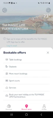 - Use the booking functions for services in the resort, whether it's your table in the speciality restaurant, your favourite daybed, the winning tennis court or make a service request directly via the app.