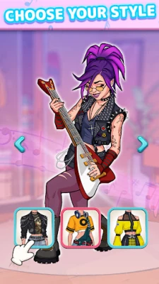Express yourself! Create a unique character by choosing your appearance, name, and musical genre. Style your outfit and hairstyle to match your vibe—whether you're a rockstar, pop idol, or jazz legend, your avatar will reflect your musical identity!