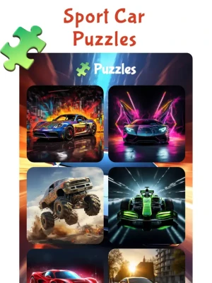 - 10 Real, high quality puzzles for 3 difficulty level with extreme sport cars, classic cars and muscle car