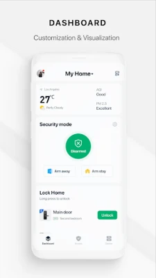 1) Residence Residents can control the site and device shared by the property manager. 2) Living Residents add and manage their own smart devices. 3) Security Residnets can add ip cameras, sensors, alarms and other device, and use the shortcut widgets on the workbench to realize functions such as arming away from home, online monitoring, and one-key disarming. 4) Access After the residents add access device (door lock), it can be authorized access permission, password, access period. 5) Customization It supports many types of smart device, and residents can combine and match them according to their needs to build their own application scenarios.
