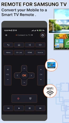 Wi-Fi Samsung TV Remote Control is a feature rich app designed for seamless integration with smart tv systems. With this Samsung TV remote app, users can effortlessly control their Samsung Smart TVs over Wi-Fi no additional hardware required and IR need to be on your mobile. It's the perfect remote control solution for modern smart Tv.