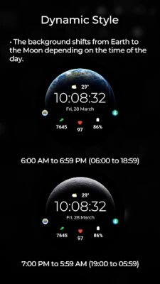 - The background shifts from Earth to the Moon depending on the time of the day.
