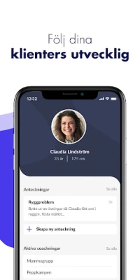 * Följ klienters utveckling, skapa anteckningar och sätt påminnelser för uppföljning * Få en överblick över dina onlineprogram, bootcamps och utmaningar * Skicka hälsningar i dina Bootcamps och kurser * Chatta med klienter & Kommentera klienters genomförda träningspass * Delta och kommentera i sociala grupper