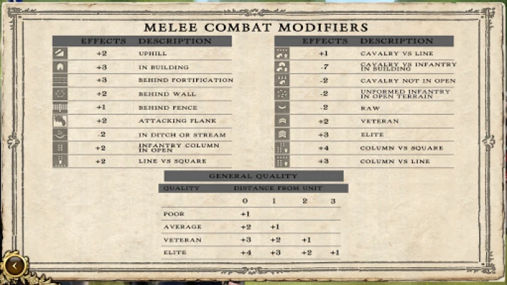 ● 5 types of infantry formation - Line, Column, Open Order, Square, Unformed.