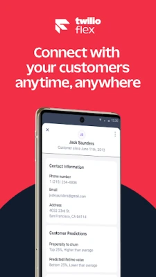 Flex Mobile extends your Twilio Flex contact center to connect customers with your employees, wherever they are. Flex Mobile unlocks all Twilio Flex functionality to empower customer-facing teams with a shared view of customer data to reduce handle time, AI features to increase productivity, and compliant omnichannel communications on personal devices.