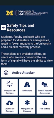 - Safety Notifications: Receive instant notifications and instructions from University of Michigan safety when on-campus emergencies occur.