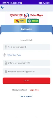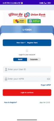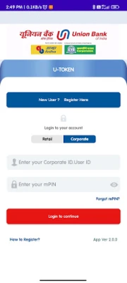 2. On successful registration, confirmation SMS will be sent to your registered mobile number. Download & install U-Token app on your mobile. Tap New User? Register Here & complete registration in app.