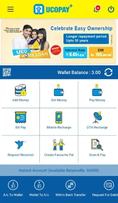 UCOPAY+ is a semi closed digital wallet application on Android platform to cater your financial requirement. It is electronic virtual wallet where you can load money and spend it for your Mobile recharge/ DTH recharge/various utility Bill Payments including Gas, Electricity, Insurance, Mutual Funds, etc., sending money to your near & dear ones. It contains various features like adding money from your net banking/debit card/credit card, getting money from your pals, paying money to your pal’s wallet/UCO Bank account. It provides facility of QR Code scanning of merchants and doing quick payment.