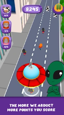 Your duty is to abduct all living beings requested by the mothership, but be careful not to abduct a car because the your ship can’t stand much weight