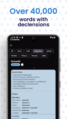 -Fast search -Word category filter -Declensions/conjugations - Offline, no internet connection needed.