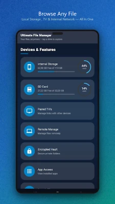 Ultimate File Manager Pro isn't just another file browser. It is a complete local-network powerhouse. Our headline features are Remote Manager and Storage Indexing.