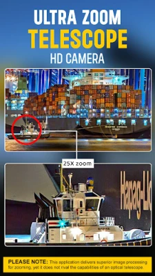Ultra Zoom Telescope HD Camera is an advance zooming Camera buit-in radius app that allows you to see the faraways objects. There are different color filters for the night time objects contrasted photo shooting. you can also use it as a Microscope, Binoculars, Magnifier, Ultra Zoom and much more with autofocus Flash Light. There are three main features , first is night mode, you can use this app in night , second feature is brightness : you can change the brightness of the camera, third is Zoom , You can Zoom the camera up to zoom, which make more accurate visibility of so far objects.