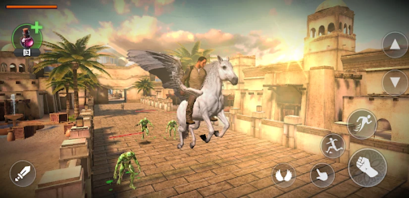 An ancient curse awakened evil spirits that turned the once prosperous oasis into a kingdom of darkness. Giant scarabs, nightmarish mummies and other monsters captured the city, driving out peaceful residents. The game is similar in style to Assassin's Creed Mobile and Tomb Raider. Together with a local resident, you will have to unravel the mystery of the ancient sphinx and lift the curse. Traveling through lost temples and dungeons, you will encounter mythical creatures, solve puzzles, fight powerful bosses and explore ancient ruins.