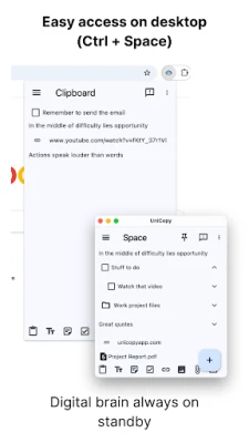 - Capture ideas from anywhere and save with sharing, app widgets, auto-paste, and much more - Stay in control of your day with quick tasks - Open on desktop easily with Ctrl + Space - Get app for all devices at unicopyapp.com - Best alternative to OnePlus Clipt