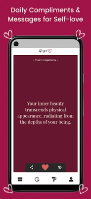 Discover the magic of daily self-love with Unique – Self-Love & Daily Compliments. Feel more confident, empowered, and beautiful every day with personalized compliments, positive affirmations, inspiring quotes, and uplifting messages delivered straight to your device.