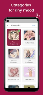 Explore dozens of categories tailored to your mood and goals—self-esteem, happiness, gratitude, self-care, motivation, inner beauty, positivity, healing, mindfulness, and more.
